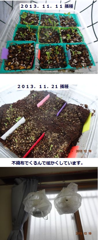 いつも種蒔きで苦労するのはペチュニアとカリブラコア、9月末か10月初めに蒔いておくと、冬の室内では育苗に専念できるのですが今年もついつい遅くなってからのタネ蒔きになりました。そのためにまだこのような状態、おまけに発芽状態がよくなくて10日後にまた蒔きました。室内ではどうしても暖房の関係で乾燥気味になってしまいます。充分湿度が保たれるように注意しましたら少し発芽率がアップ、順調に成長できたらサマーガーデンも賑わってくれそうなので大切に育てます。夏の「ペチュニアガーデン」来年はどのようなお花でいっぱいになるでしょうか。前年のタネ蒔きの時期を見直して、翌年(2014年)の計画をしてみました。もう少し早く蒔きたい種類もあるのですが室内での管理場所の事情もあって仕方ありません。プリムラは5月に蒔いていたのですが、これは夏の暑さを幼苗が元気に越せるかという心配があったからですが今年は例年よりも少し遅くやってみます。これは実験的タネ蒔きです。今年も12月1日から「はこだてクリスマスファンタジー」が開催されております。いつもご訪問いただきありがとうございます。日本ブログ村ランキング参加中です。よろしかったらクリック↑して応援してね!
