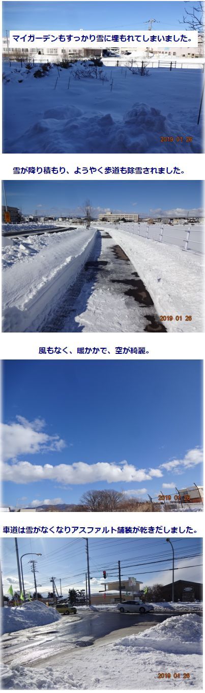 積もりに積もった雪も昨日と今日の2日間で49cm から35cmに激減しました。プラス気温になると一気に融け出します。今日は+2.4でした。しかし、マイガーデンはさっぱり減ったようにも見えません。しっかり雪に埋もれています。今日は午前中に1時間ほど散歩、お天気も良く、歩道も綺麗に除雪されました。あ、そうか、冬休みが終わって子ども達の通学開始のせいかな??1階大ホールの鉢花も元気に育っています。以前に6階に連れてきてお世話したキリン草も少し背が高くなりました。根元から新しい芽が出てきました。なかなか大きくならないので気になります。日本ブログ村ランキング参加中です。 にほんブログ村 いつもご訪問いただきありがとうございます。