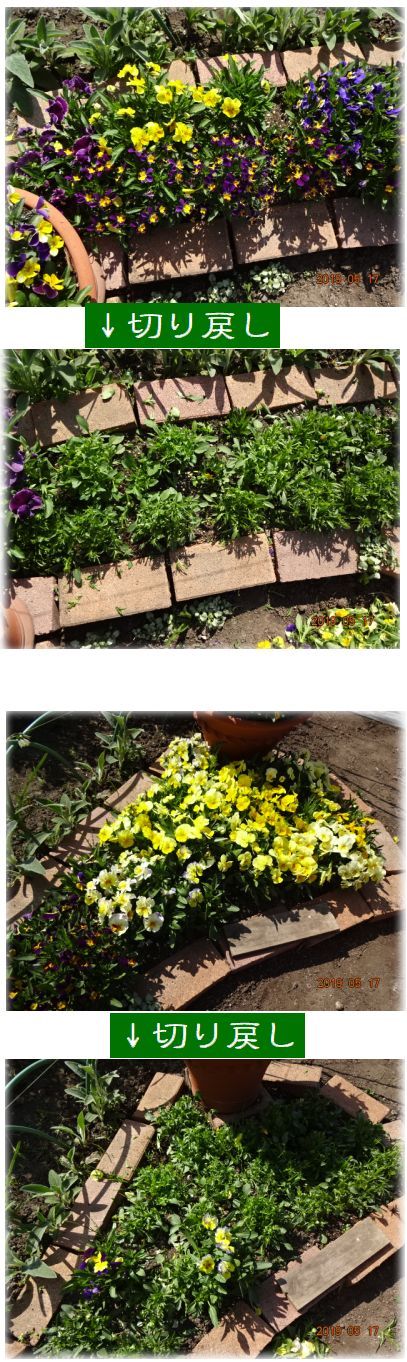 今日は風もなく暖かで一日中お庭にいました。ビオラもかなり伸びてきましたので、もう一花咲かせたいので切戻すことにしました。ちょうど満開になってきれいになってきたところですが、後、ひと月間、咲いてもらうには今がチャンス。ジョキジョキとカットしました。さて鉢植えはどうしようか、考え込んじゃったのですが、レンガ鉢は切戻しました。テラコッタは後少し咲いたらサフィニアを定植したいので地植えよりも早めにビオラはおしまいにしようと思います。そこで、部分的にカットすることにしました。咲いているお花は少なくなりますが、開花期間を長く保てます。暖かさに誘われてビオラやパンジーの人工受粉の練習をしました。まだ十分に花粉が出ていない状態ですのでちょっと苦労しました。タネ採り用のお気に入りのビオラとパンジーは別の場所で咲かせていますので、切り戻しせずにたっぷり花粉が出るのをまって、チャンスを逃がさず受粉したいです。私はいつも下弁を取り除きます。そうしておくと、どの花を交配したかをすぐ探しやすいのです。それにこうして下弁を欠いてしまうと蜂さんが止まる足場がないので交配後、蜂さんに邪魔されなくていいかなって思ったりして・・・・。( 私はピンセットを使わずにつまようじを使います。)交配についてもっと詳しく知るためにお勧めなのは、ROKAさんのサイトです。日本ブログ村ランキング参加中です。 にほんブログ村 いつもご訪問いただきありがとうございます。