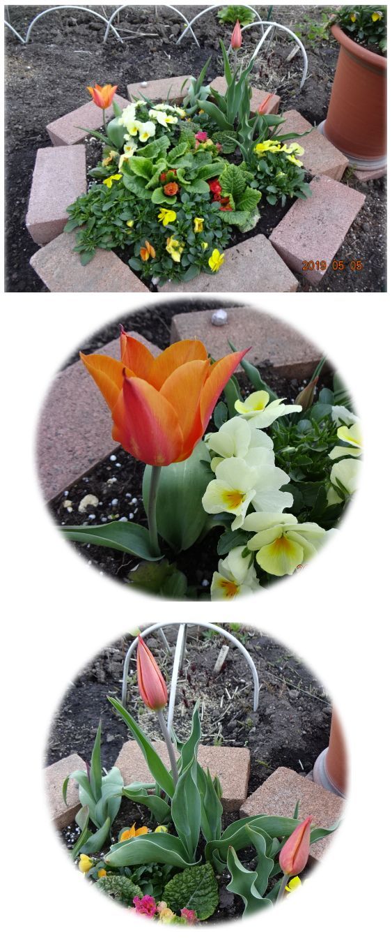 マイガーデンの今日の様子、全体を撮るのは私には難しいので少しづつカットして撮影、5月2日の記録です。それをつなぎ合わせるとこのようなガーデンの全景です。寄せ植えしたテラコッタのビオラ、プリムラも少し膨らんできました。植え込んでから花やつぼみ、伸びた茎をカットして整形したので花盛りはこれから。連休明けにはお花いっぱいをイメージしたのですがそうはならないようです。頂いた多年草の芽が伸びてきて元気です。最近ようやく「大きくなったね」と声を掛けています。雨が降るかも? そう思いながらも出かけました。案の定、空が曇りだし小雨が降り出しました。今夜は風が強く吹いているので、今日が最高の花見ができたように思います。日本ブログ村ランキング参加中です。 にほんブログ村 いつもご訪問いただきありがとうございます。