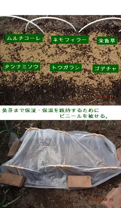 そろそろ直播きも大丈夫かなと思い6種類蒔きました。赤玉土を載せてたっぷり水を含ませ、次に残っていたタネ蒔き用土を被せてこれにもたっぷり吸水させ、その上にタネをばらまき、ビニール袋を広げて被せました。この場所は午前中は日当たりが良くないのでひんやりしています。チューリップは花びらをつぼめてとてもお行儀よく咲いています。どのようなお花が咲くかなと楽しみにしておりましたが今日ですべての確認ができました。来年はやはり、以前購入した国〇園に注文しよう。表示されていた写真の色や形とかなり違っていてがっかりでした。日本ブログ村ランキング参加中です。 にほんブログ村 いつもご訪問いただきありがとうございます。