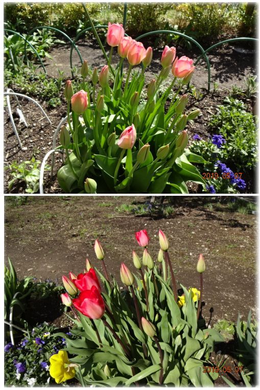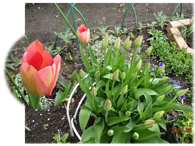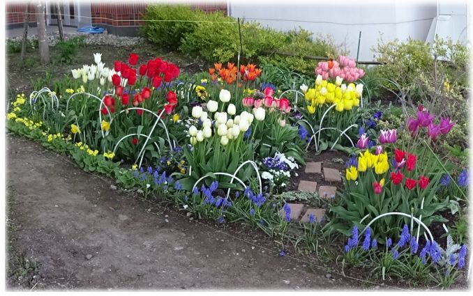 ここへ来てから1昨年の秋に初めてチューリップを植えました。旧宅ではコンテナに植えていたので夏に掘り上げましたがここではそのままにすることにしました。ところが引っ越しとなったので新しいところにまたチューリップのコーナーを作りました。旧の場所から球根を掘り上げて色の同じものを一緒に植え込みました。というわけで、この黄色のチューリップは2種類が咲いています。黄色と白の2色咲は咲き始めが早いのですが、ようやく黄色が咲きだしました。昨年の私の畑だったところに芽が出たのを運んできて植えました。可愛いお花が咲きだしました。来年からはず~っとこのお庭に咲いてくれることでしょう。勿忘草がいっぱいのお庭にしたいのです。ぐんぐん芽が伸びるものもあればなかなかじっと動かいないものもあり、毎日、覗き込んだり、棒で土を取り除いたり。ここまでくれば今度は成長が早いように思います。私が初めてこの畑の隅で見つけたのは2年前、マツバギクと思っていました。その次の年、雑草が生えてそのお花は忘れてしまっていました。昨年、思い出して雑草の中を探し、そのお花が残っていることに気が付きましたがそれは僅かばかりでした。掘り上げて目につきやすいところに植え替え、僅かな株が冬を超えました。このセダムを育てておられた方が引っ越しの後、セダムは見放されていましたが今度は私の畑の近くに連れてきました。仲間を増やしてあげたいと思います。冬越した葉ボタンが花芽を伸ばしてきました。伸びたら何度もカットしてたくさんの脇芽を増やし、踊り葉ボタンを作る作業のスタートです。日本ブログ村ランキング参加中です。 にほんブログ村 いつもご訪問いただきありがとうございます。