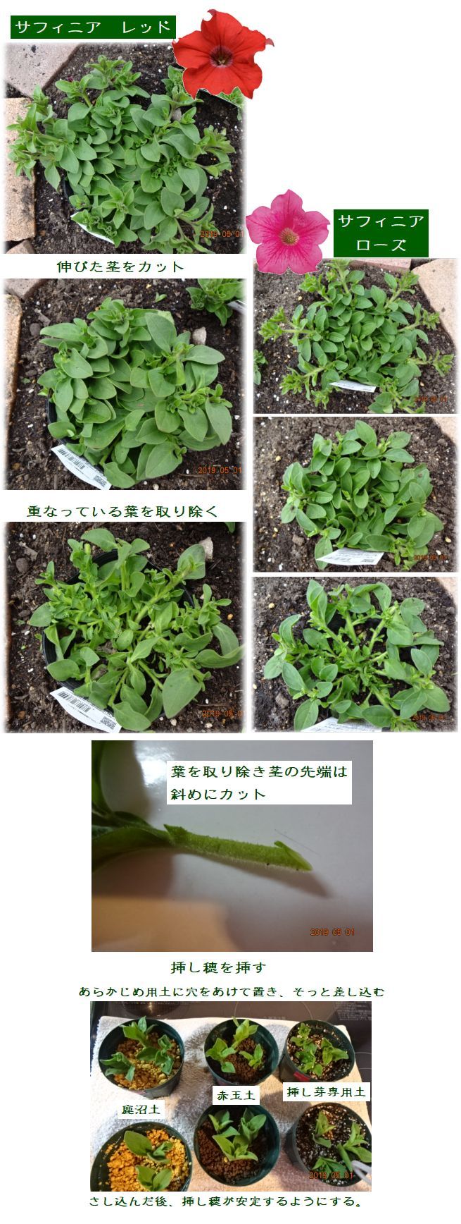 爽やかな初夏の一日でした。カッコウの声も聴かれました。サフィニアのピンチをしました。外側に向かって伸びた茎をカットしておかないと中心部がスカスカになります。小さな脇芽を伸ばすために蕾をすべて摘み、さらに頂芽をカットします。次々に花が咲きだすと、もったいないと思いそのまま咲かせてしまいがちですが今がチャンスです。外側に向かって伸びた茎をカットするとご覧のようにわき芽も少なく、痩せている株が現れました。購入日がたった1週間弱でありながら、ホームセンターの株は3号ポットでしたからこれから大きくするのはもう少し時間がかかります。ゆっくりゆっくりピンチを繰り返しながら太らせていきます。日本ブログ村ランキング参加中です。 にほんブログ村 いつもご訪問いただきありがとうございます。