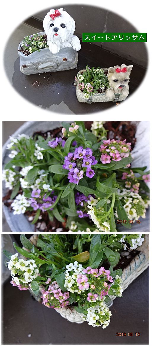 今日の散歩はホームセンター、一番欲しかった花苗はカリフォルニアローズ(ダブルインパチェンス)まだ入荷されていませんでした。次に欲しかったのはカラーのアリッサム。以前にタネ蒔き挑戦したのですがいずれの時もだめでした。毎年、カラーを心がけながらも良い苗に恵まれずにおりました。先日、vabiちゃんmariちゃんのミニプランターをお化粧しなおしたのでそれに植えてあげようかと購入しました。プリムラを購入した時にアリッサムも購入しました。これはスイートアリッサムと違って長いこと形が崩れないですがここ2年間育ててみて採種ができないと思っています。でも切戻すと長いこと咲いてくれますので嬉しいお花です。日本ブログ村ランキング参加中です。 にほんブログ村 いつもご訪問いただきありがとうございます。