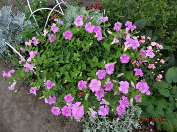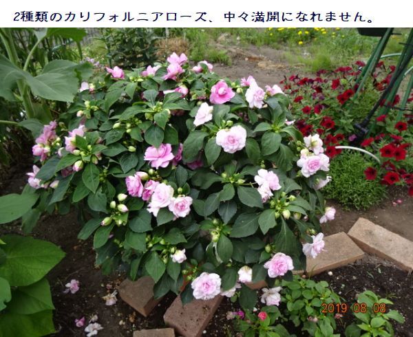 今日も涼しい一日、19.8℃が最高気温でした。風は少しありましたが、日差しはなく(日照時間0時間)ガーデン作業には最適と張り切って午前中3時間ほど頑張りました。カリフォルニアローズ(ダブルインパチェンス)も賑やかに咲いてくれました。今日の作業の目的はサフィニアとカリフォルニアローズの挿し芽苗の定植です。施設で使っていない鉢(瀬戸鉢)を新たにお借りしたので鉢植えを作りました。細長い鉢で口径が小さく寄せ植えは無理なのでカリフォルニアローズを一株ずつ植えました。その他の挿し芽苗をあちこちに定植しました。ガーデンの右側半分のサフィニア(ペチュニア)、カリフォルニアローズコーナーの整理が出来ました。ピンチもしたので、あとはゆっくりと挿し芽苗の成長を見守ります。ガーデンの右側の様子です。カリフォルニアローズを鉢植え、株間を広げて定植しました。サフィニアの挿し芽も定植しました。ヘブン日誌早くたくさん咲いてくれないかな~、でもそれは欲張りな事。早咲きのアーリーヘブンリーブルーのおかげで8月初旬から愉しむことが出来ているのですから。もう一株が咲きだしたら賑やかになるのですからじっくり待つことにしましょう。日本ブログ村ランキング参加中です。 にほんブログ村 いつもご訪問いただきありがとうございます。