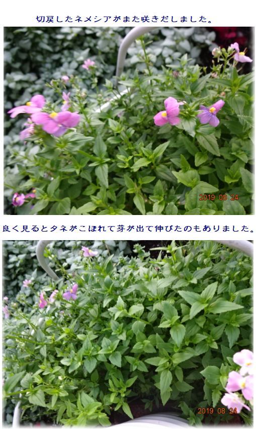 すっかり涼しくなりました。気温25.7~19.3雨でお花が傷みましたが、さらに今日は風が結構強くて雨を含んだお花が風に吹かれて一層傷みました。元気なお花だけ紹介します。ネメシアの切り戻しがうまくいきました。ノースランドは切り戻しに失敗でした。昨年はうまくいったのですが。たった一粒のひまわりのタネ挿し芽苗の整理ヘブン日誌日本ブログ村ランキング参加中です。 にほんブログ村 いつもご訪問いただきありがとうございます。
