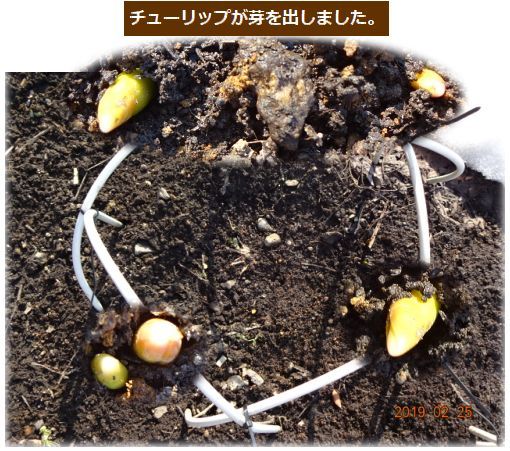 始めて植えた球根ですが雪の中でも咲いていたようです。