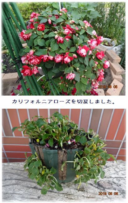 ヘブンリーブルーが4輪咲いた・サフィニアブーケのその後・カリフォルニアローズの切り戻し