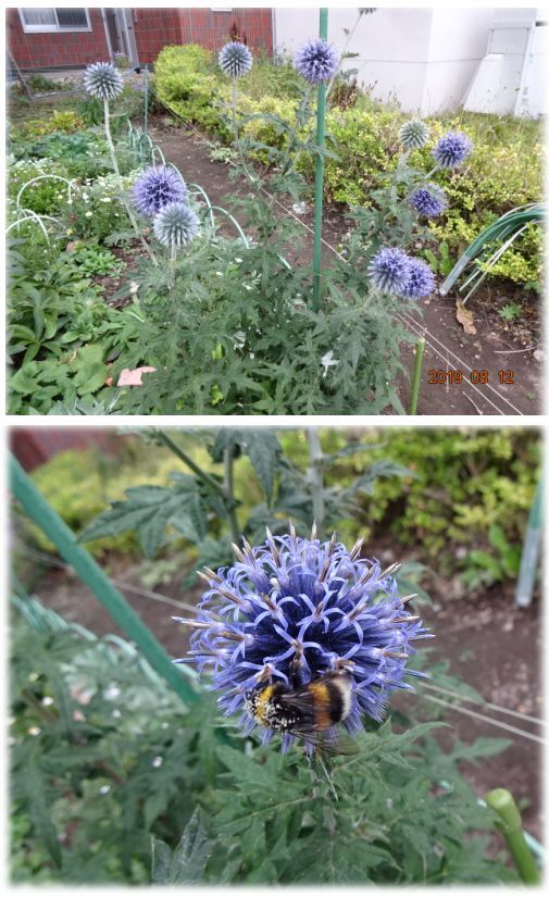 とても素敵な色の瑠璃玉アザミが咲き進みました。
