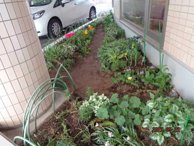 変形な駐車場花壇はなかなか全景をとるのが難しいです。