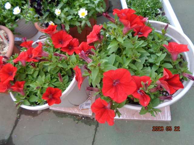赤いサフイニアはまだまだお花が少ないですが、6月がサフイニアの本番ですから