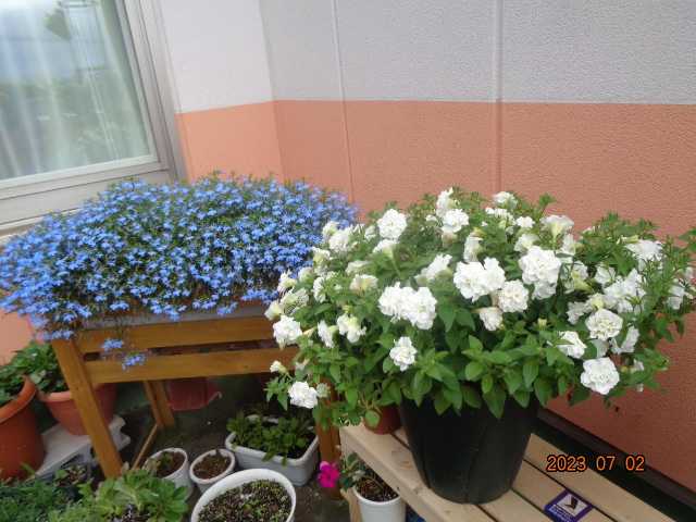 アズロコンパクトは少し花数が減ったので、ブルーが少し色褪せてきました。