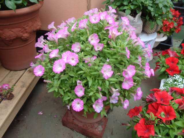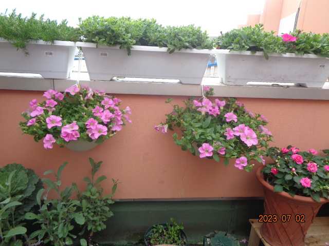 サフイニアブーケの切り戻し・ピンクコーナーを造成中・狭いながらも楽しいマイガーデン。