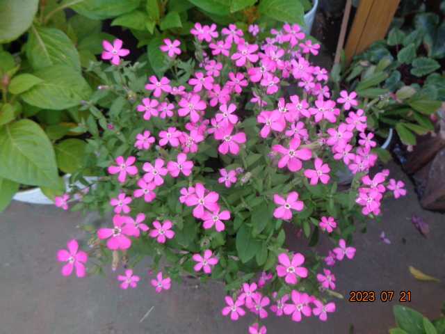 この鉢にたくさん芽が出すぎてしまい、そのために花径も小さく、色も小さ目