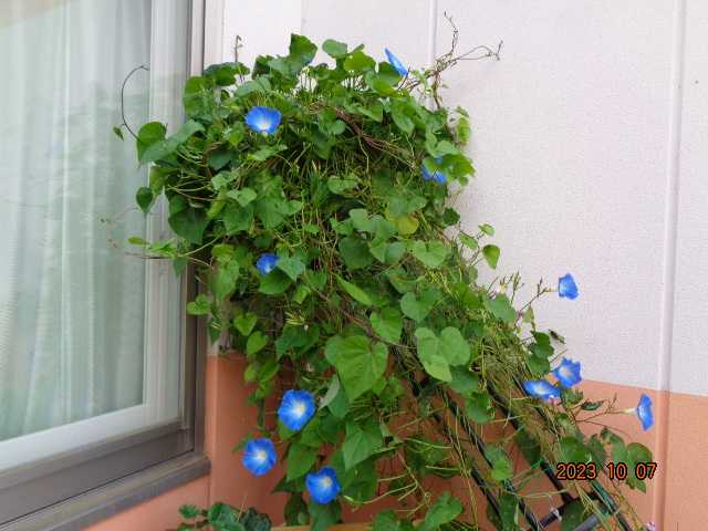 今朝のヘブンリーブルーです。倒れたままにたくさんお花が咲いていました。