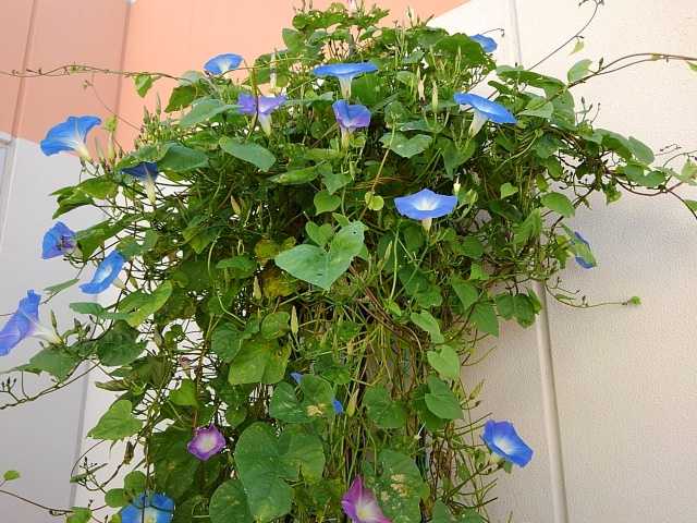 朝晩は冷えてきました。ようやくヘブンリーブルーが咲き始めました。
