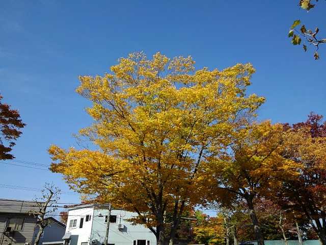紅葉になる前に枯葉になっている木々が多くあり、色も鮮やかさを欠いています。