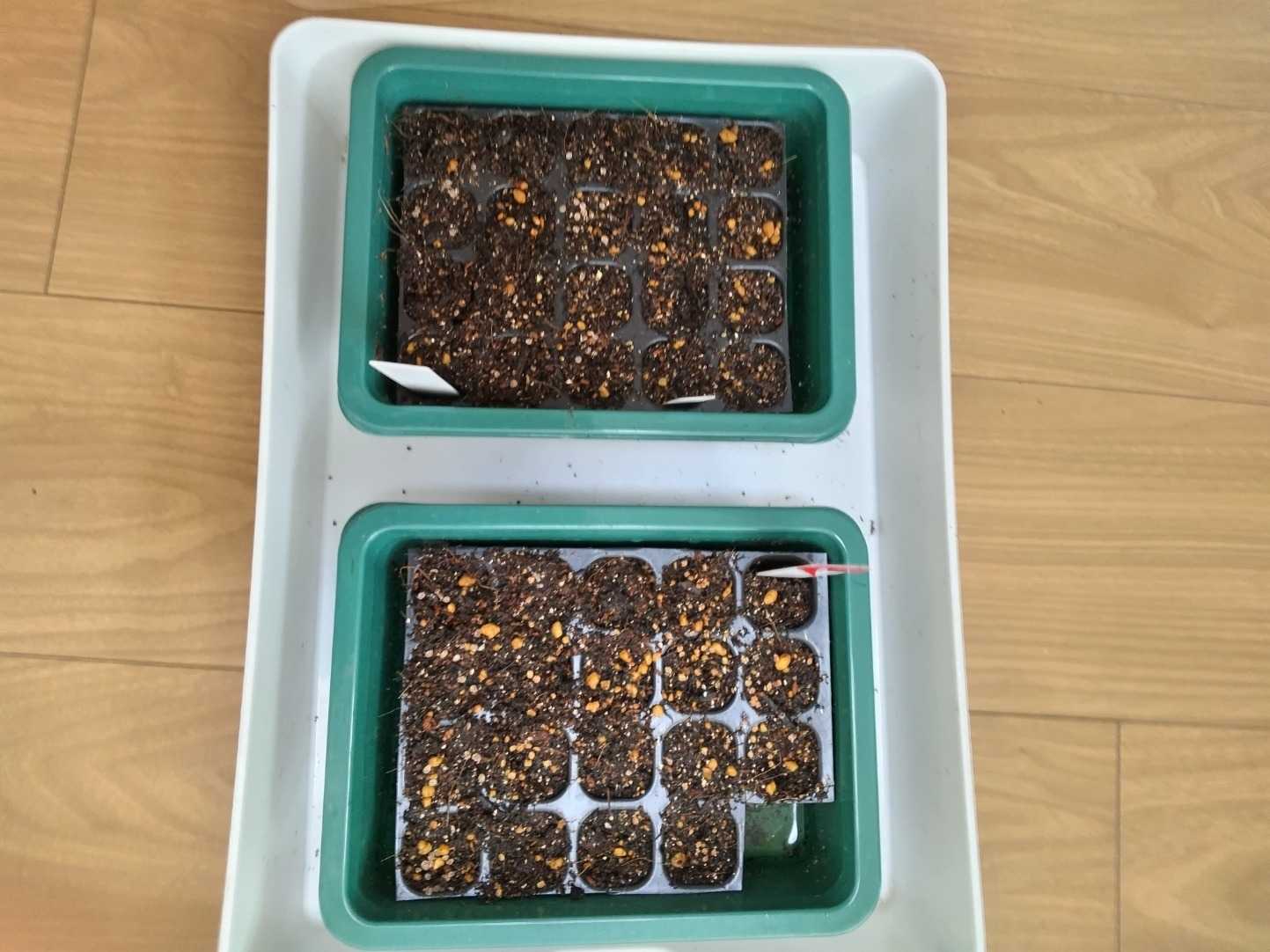 芽が出てきたら間引きをしながら、約径3mmほどのプラグトレイに移植し、