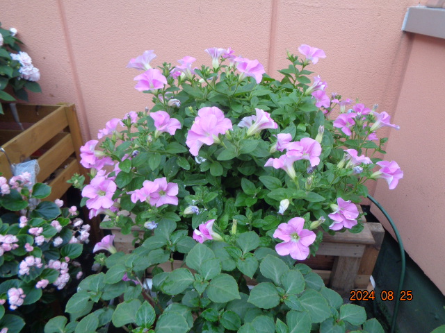 サフイニアのパステルピンク、この優しいピンクがお気に入りです。
