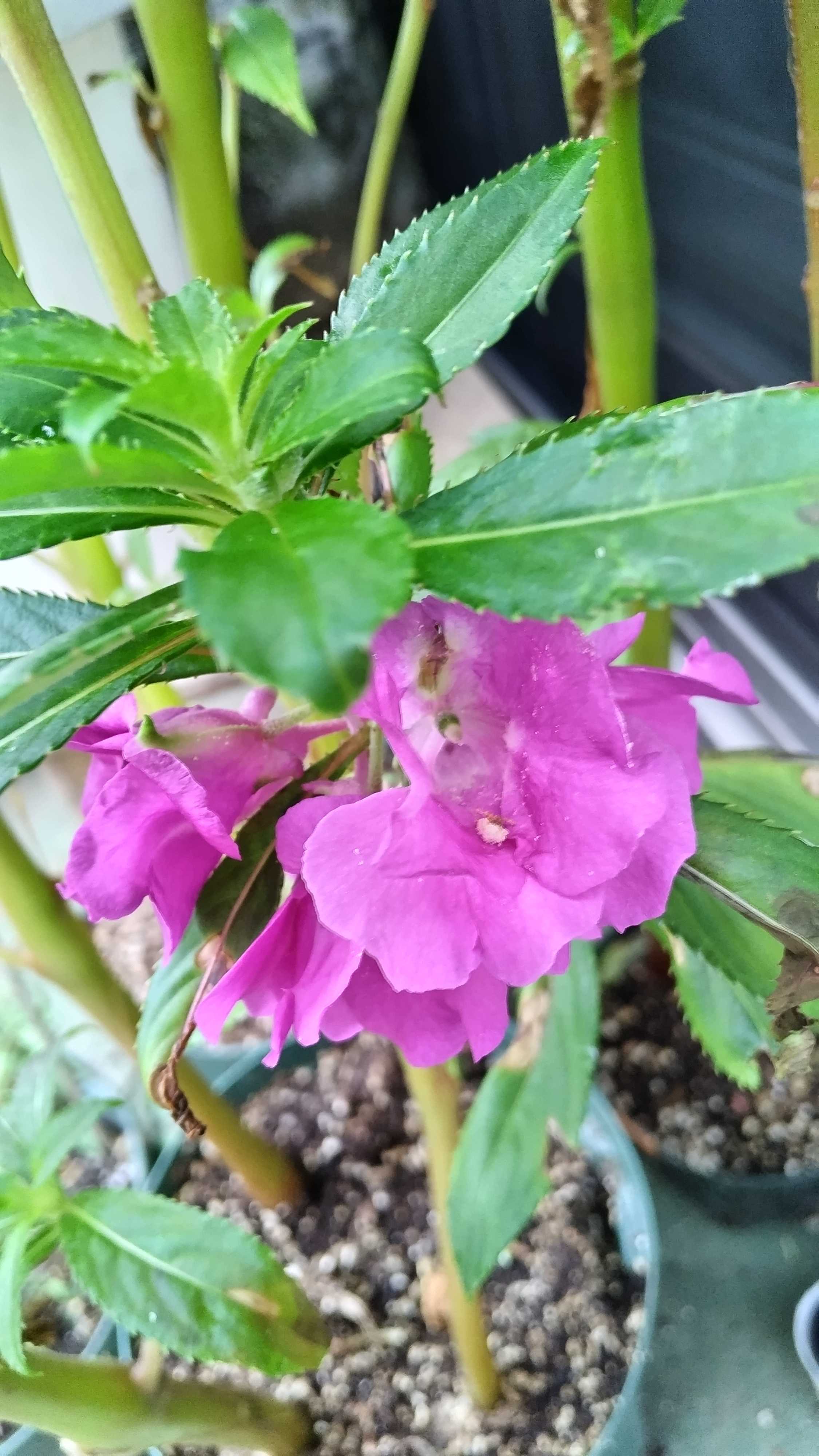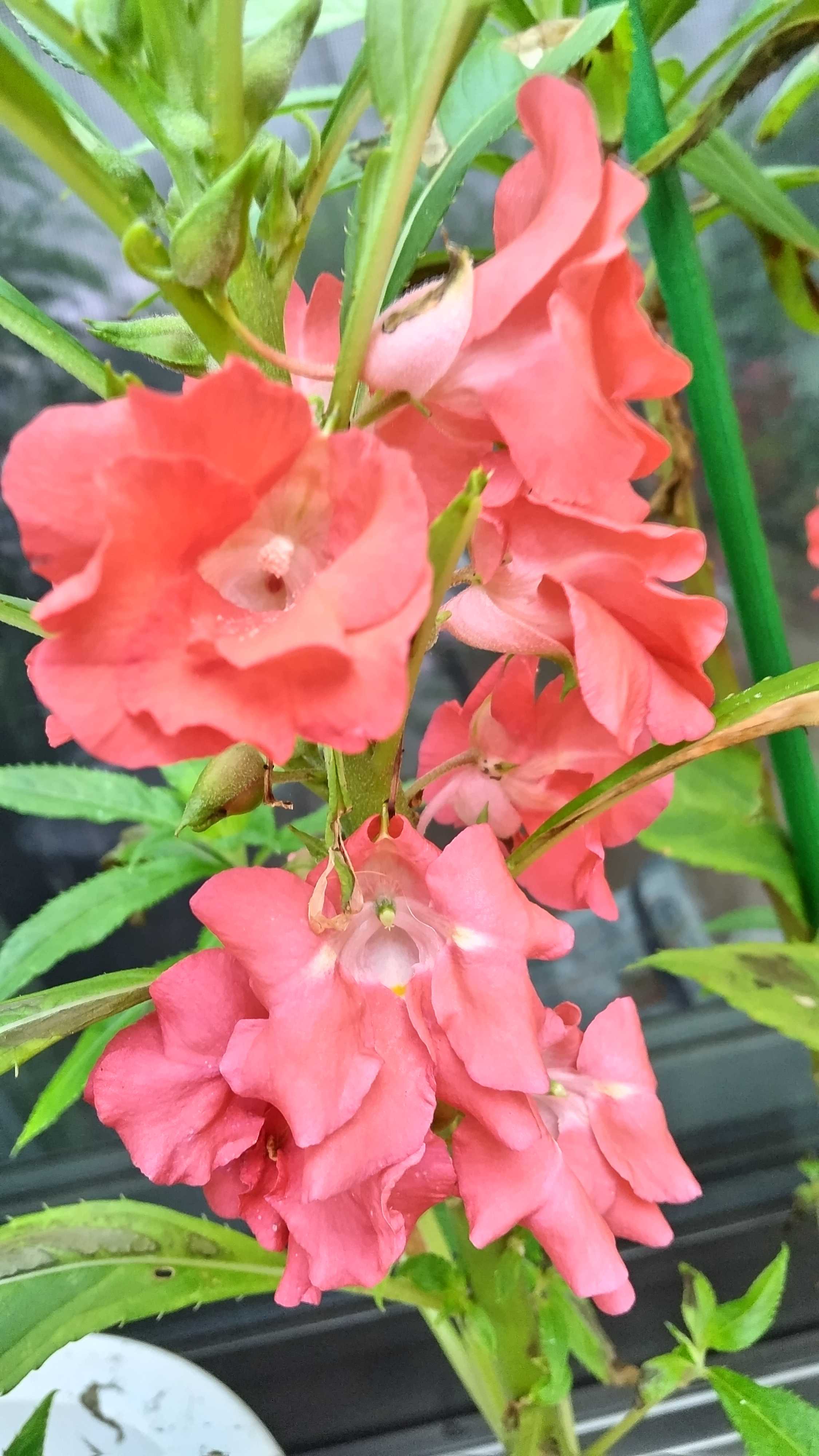 「ホウセンカ」幼かったころには、田舎の狭い庭にもこのお花があったなあと
