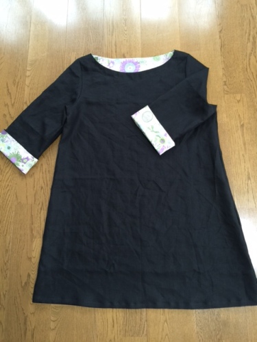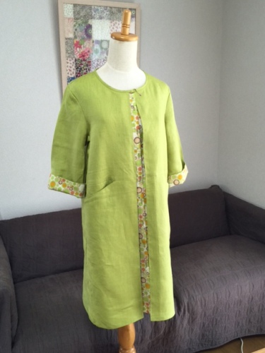 オーダー品が完成しました。生地は C&SオリジナルリネンパターンはC&S106ワンピース Lサイズ(着丈を100cmに伸ばしてあります)リバティはpuffにほんブログ村