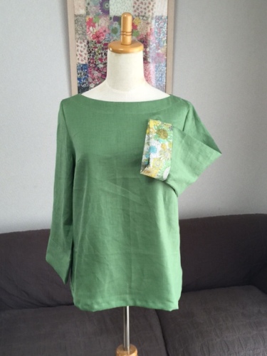 自分服を作りました。生地はC&S やさしいリネンパターンはこちら6月19日 好評につき6回目の再入荷!ソーイングパターン*Jolie◇couture*(ジョリクチュール)『アシメカラーチュニック&ブラウス』【レディース】最初はポケットなしでつくってみたけどやっぱりポケットを付けた方がかわいいみたいお気に入りがまた1枚増えました。にほんブログ村