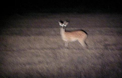 19日からシカ猟を本格始動・・・・夕方から出かけて目撃数9頭、刈り取り前の牧草地だったり、良い所だなと思うと日没後でタイムオーバーだったりして、獲れませんでしたがついでに周辺地域のライトセンサスをしてきました。刈り取り後の麦畑にいたメスジカ、ライトに照らし出して 撮りました。 昨日の早朝、画像を撮った付近でメスを獲りましたがこのシカとは違うようでした。午前中は、解体処理、残滓を処理場に運んだりで終わり、夕方から又出動してオスを獲ってその解体処理等全部終わったのが21:30分・・・・・シカの増加をどれだけ抑えられるかガンバリマス