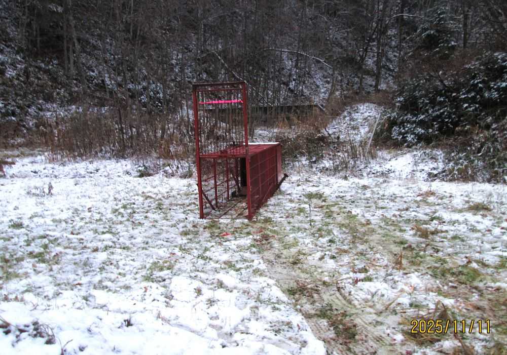 ヒグマ用の箱わなに監視カメラを掛けているが、怪しい黒い影が