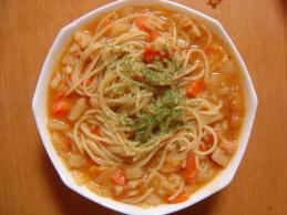 第一戦目を終えて、帰ってきました。明日は数学と物理。どうだった?と聞いたら、やばいかな?だって。本人は、気楽なもの・・・今夜は、昨日のミネストローネを使って、スープスパゲティーたっぷりに見えますが、パスタは100グラムです。