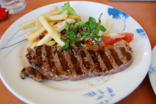 お盆のある日,母と息子を連れて墓参りに行き,その帰りにファミレスへ寄った時のこと。息子「僕はあまりお腹が空いていないから,パスタでいいや。ここのステーキは意外と美味しいよ。お父さんどう?」私「ステーキはちょっと重たいから,別のものにするよ」息子「え!ステーキ食べられないの?もうそんなお年なのね」私「なにを!分かった。挑戦してやる」そんなやり取りを,ニコニコと母は見ておりました。ちなみに母は,雑炊を。やってきたのが,このステーキとカルボナーラ。結局,ステーキは半分息子に食べてもらいました