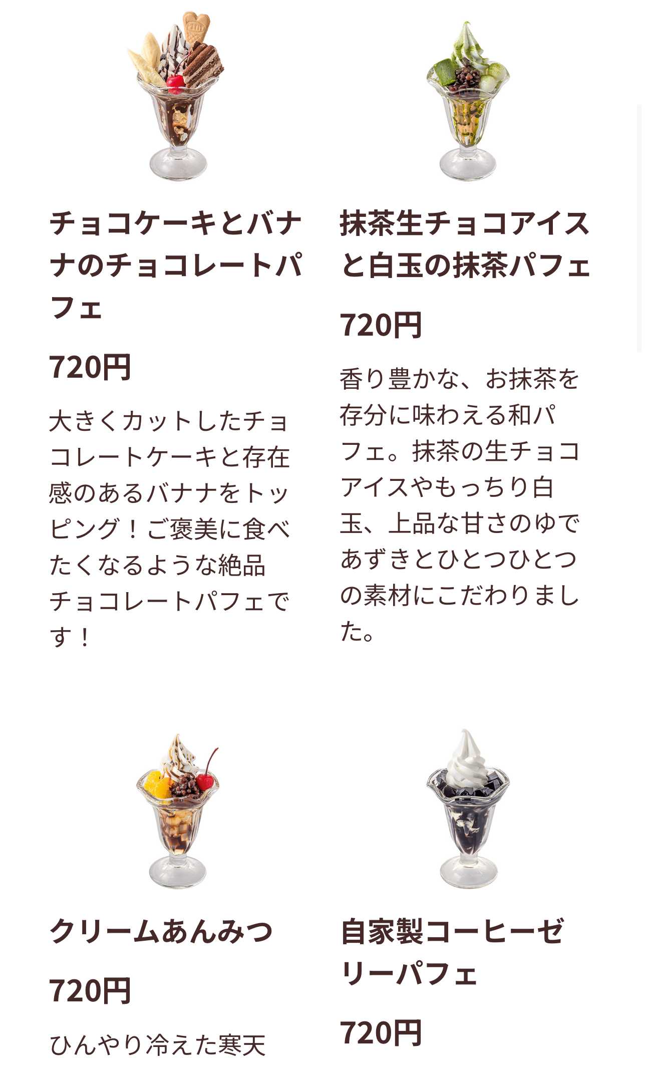 🍫チョコケーキとバナナのチョコパフェ(720円)×2