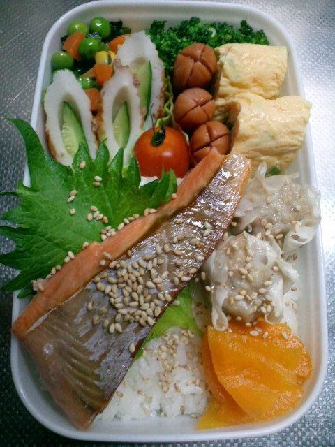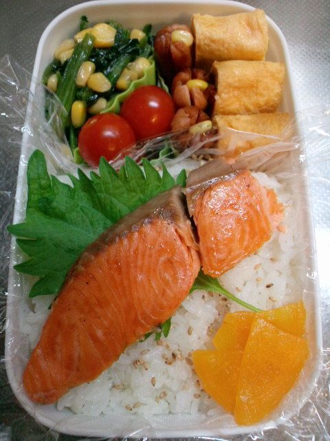 *お弁当作りました*◆鮭◆ほうれん草とコーン炒め◆卵焼き◆ウィンナー◆ミニトマトお昼が一番楽しみになるお弁当 [ つむぎや ]design by sa-ku-ra*