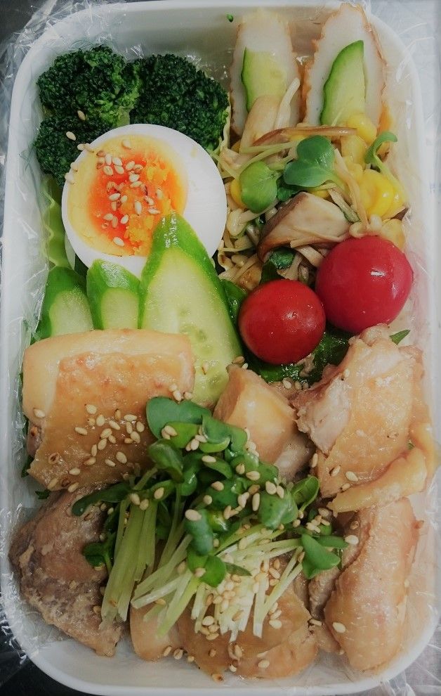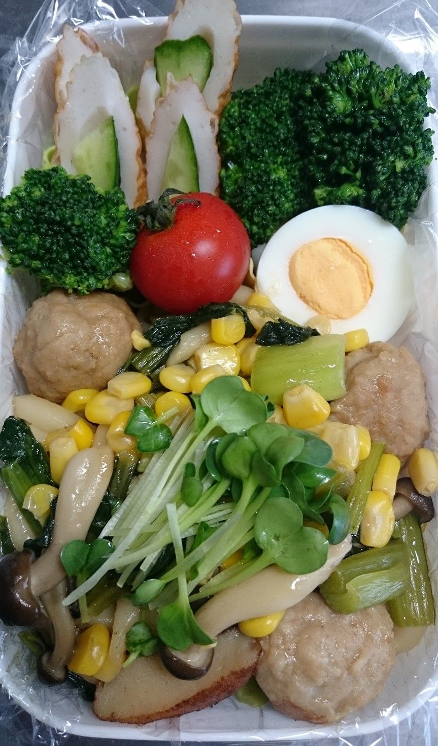*お弁当作りました**肉団子と小松菜、しめじ、薩摩揚げが入った焼うどんです◆焼うどん◆ブロッコリー、ミニトマト◆ちくわ胡瓜、ゆで卵価格:1944円(税込、送料別) (2018/6/30時点)design by sa-ku-ra*