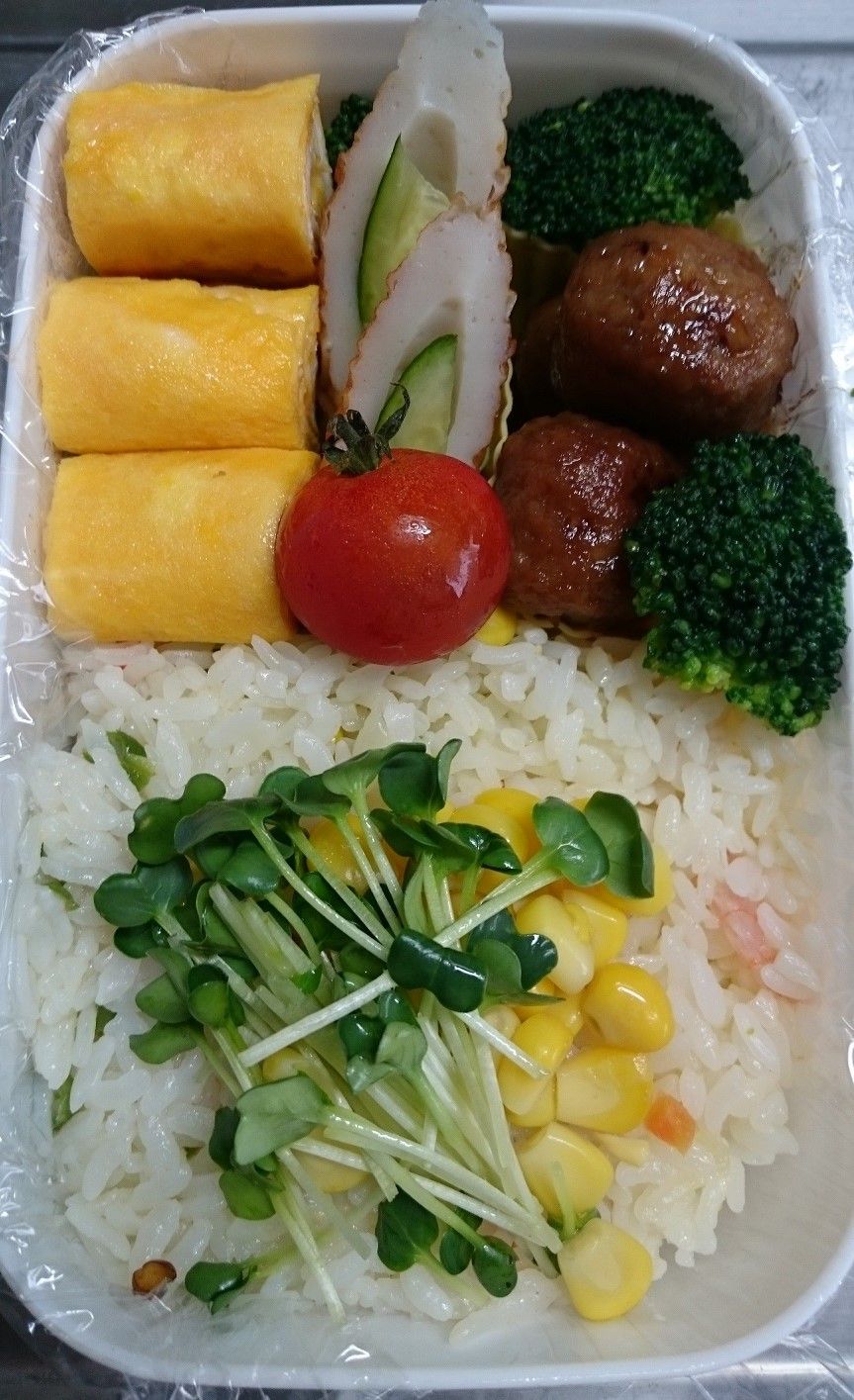 *お弁当作りました**ご飯は、コーンとカイワレ大根、ごまを混ぜました*◆コーンとカイワレ大根ご飯◆鮭、しゅうまい◆卵焼き、ウィンナー◆ちくわ胡瓜、ピーマンと人参の炒め物価格:3780円(税込、送料別) (2018/6/30時点)design by sa-ku-ra*