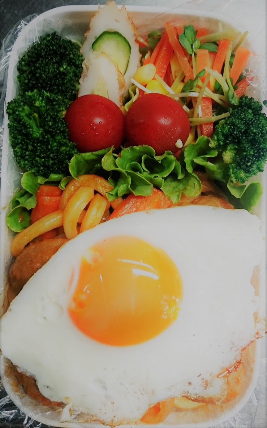 *お弁当作りました*↓上に目玉焼きをのせましたよ◆焼きそば(目玉焼き)◆ブロッコリー、ミニトマト◆ハムのレタス、キュウリ巻き価格:864円(税込、送料別) (2018/6/30時点)design by sa-ku-ra*
