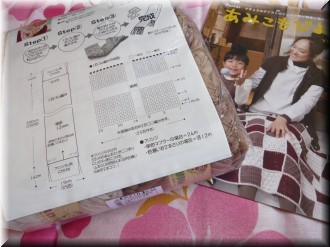 編み棒の12ミリと、かぎ針、毛糸、編み図☆