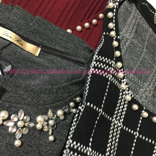 ↑ワインレッドのパール付きニット☆