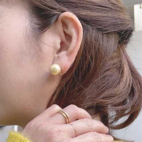 キャンドルの柔らかな光の下でコロンと揺れるボーロは、まるで冬のファンタジーを語るよう。甘さを抑えたシャープなデザインが、大人の自信を後押ししてくれます。このイヤリングがあれば、どんなシーンもより華やかで前向きに! 想像するだけで、心がときめきませんか?