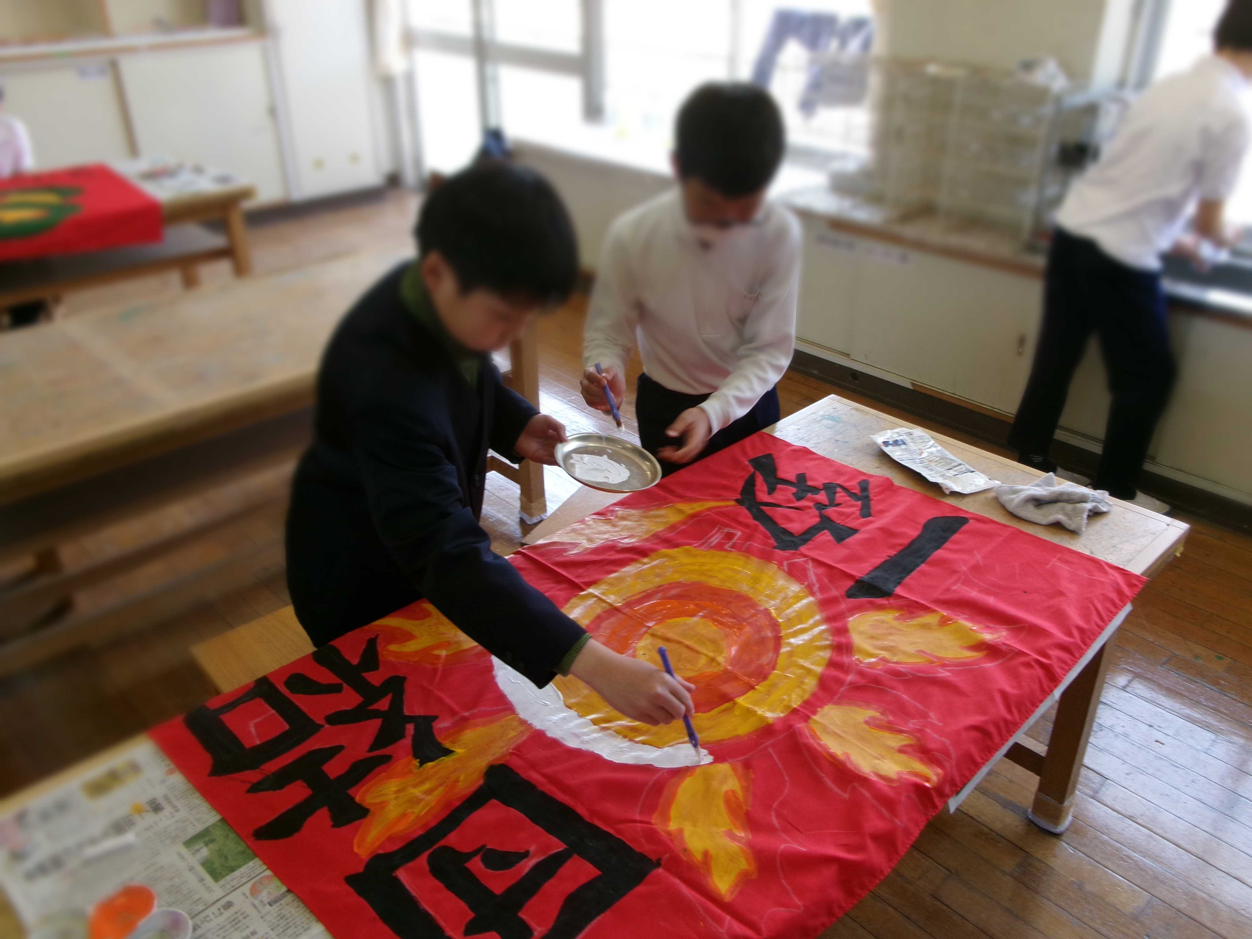 縦割り班の班旗づくりおこないました