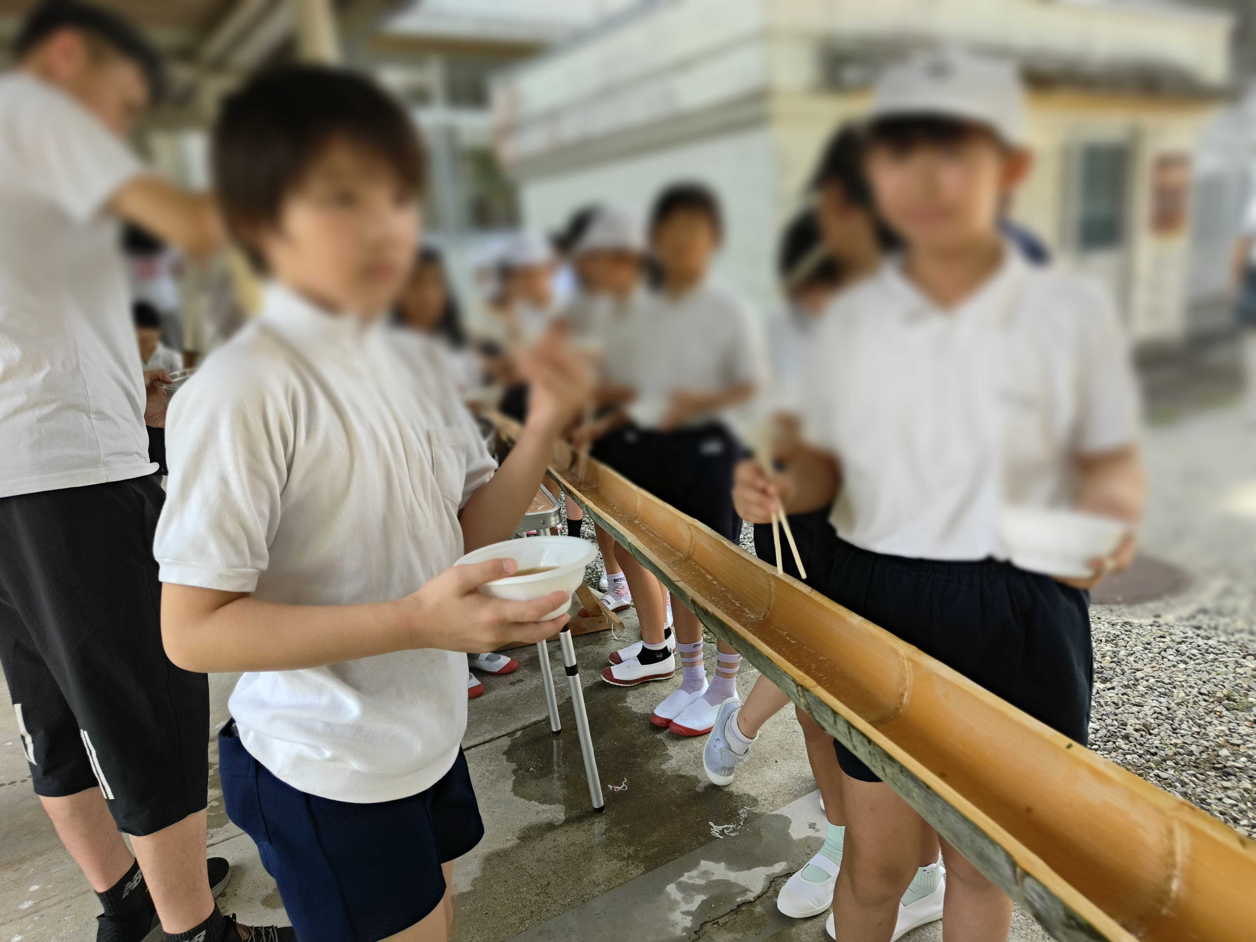 🌸✨莇野小学校 2学期スタート✨🌸今日は待ちに待った 始業式 🎒🏫久しぶりに会う友達と、話も弾んで大賑わい😊🎶そして‼️まだまだ暑いこの季節にぴったり☀️💦地域の方やPTAの皆さんからの 残暑お見舞い企画 🎁なんと「流しそうめん」を準備してくださいましたー‼️🎉🍜🎋1週間前から竹を切り出して節をとるところまで、地域のゲストティーチャー&PTA役員さんが準備💪✨今日は、そうめんだけでなく…🍳🥢ねぎや玉子焼きのトッピング、さらにプチトマト🍅・ぶどう🍇・ゼリー🍮まで流れてきて、子どもたちは大喜び😍‼️そうめんは地元に製麺所もある「揖保乃糸」✨地元の方が調達してくださいましたよー↑3グループに分かれてソーメン流し、交代する前には、たっぷりすくっておいて、ゆっくり食べています暑い中、役員さんが一生懸命ゆでてくださり、本当に感謝です🙏🌈↑こちらは1年生、はじめてのソーメン流しではなかなかすくえなかったので、ゆっくりザルから分けていただきましたー子どもたちは「ありがとう😊」の気持ちを込めて、モリモリ食べていました✨🍴特にゼリーは争奪戦になるほどの大人気🤣🎉先生方も一緒に楽しみ、2学期の素敵なスタートをきることができました🌟✨ 最後はゲストティーチャーへのお礼をしっかり伝えて、笑顔いっぱいで解散😊💖🌟莇野小ならではの温かさと元気がつまった、最高の始業日となりました‼️🌟🔗X いい街あぞの🔗#流しそうめん#揖保乃糸#素麺やっぱり揖保乃糸#地域とともに#PTAありがとう#2学期スタート#夏の思い出#莇野小#莇野小学校#あぞの小学校#小規模特認校#姫路市立莇野小学校#あぞのしょうがっこう#AZONOELEMENTARYSCHOOL#おいでよ莇野小学校へ#ひめじの学校#探求学習#表現活動#1年生募集中#新1年生募集中#あぞの#あぞぴー#莇野公民館#姫路市夢前町#あぞの応援団#莇野地区連合自治会#姫路市立莇野公民館#あぞの村興しプロジェクト#交通の便がよい#姫路市#azonopro#azono#himeji#azono.yumesaki#azono.special#Azono_Yumesaki#いい街あぞの