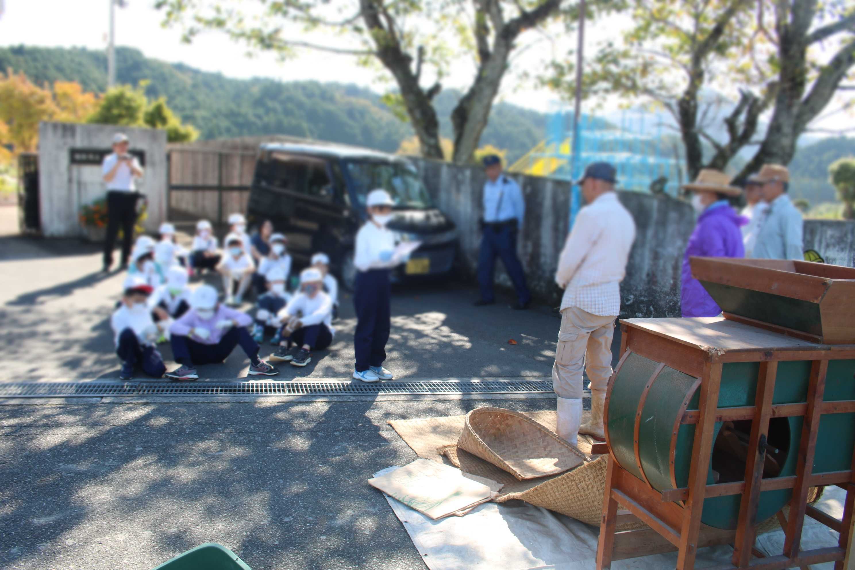 🌾中学年の挑戦!昔ながらの「脱穀」体験✨莇野小の米作り🍙、今回はいよいよ「脱穀」に挑戦です!この活動は3年生と4年生の中学年で行いました😊まずは、地域のゲストティーチャーさんにごあいさつ🙌なんと代表あいさつは3年生が担当👏 しっかりとしたあいさつに、地域の方々も思わずニッコリ☺️ゲストティーチャーさんから、脱穀のやり方をていねいに教えていただきました🎓🌾使うのは昔ながらの「足踏み式脱穀機(カワベ式義士號)」!製作所がなんと「飾磨郡青山」😳今の姫路市青山にそんな歴史があったとはびっくりです✨機械はとても大切に保管されており、毎年こうして児童の学びに活かされています💡👣児童たちは交代しながら一生懸命踏み込み💪稲わらを入れると重くなって回転が落ちるので、「がんばれ〜!」と声を掛け合いながら挑戦していました🎵つづいては唐箕(とうみ)体験🌬️くるくると手で回して風を送り、籾(もみ)と細かい藁を選り分けます。「これが昔の人の知恵か〜!」と驚きの声も😲✨それでも細かなゴミは手で取り除く手作業。昔の農作業の大変さを実感する時間となりました🍂2時間かけて、なんと米袋2袋分‼️みんなの頑張りの証です✨✨最後は4年生がお礼のあいさつ🌾感謝の言葉に、地域の方々から大きな拍手が👏莇野小では、1年を通して本物の米作りを体験🌾“学びを地域でつなぐ”そんな莇野小ならではの教育活動です🌈さてさて、次はどんな体験が待っているのでしょうか?😆💭#莇野小学校#あぞのっ子#米作り体験#脱穀体験#地域とともに#姫路市の小学校#小規模特認校#学びのつながり#体験型学習#ふるさとの知恵#莇野小#莇野小学校#あぞの小学校#小規模特認校#姫路市立莇野小学校#あぞのしょうがっこう#AZONOELEMENTARYSCHOOL#おいでよ莇野小学校へ#ひめじの学校#探求学習#表現活動#1年生募集中#新1年生募集中#あぞの#あぞぴー#莇野公民館#姫路市夢前町#あぞの応援団#莇野地区連合自治会#姫路市立莇野公民館#あぞの村興しプロジェクト#交通の便がよい#姫路市#azonopro#azono#himeji#azono.yumesaki#azono.special#Azono_Yumesaki#いい街あぞの