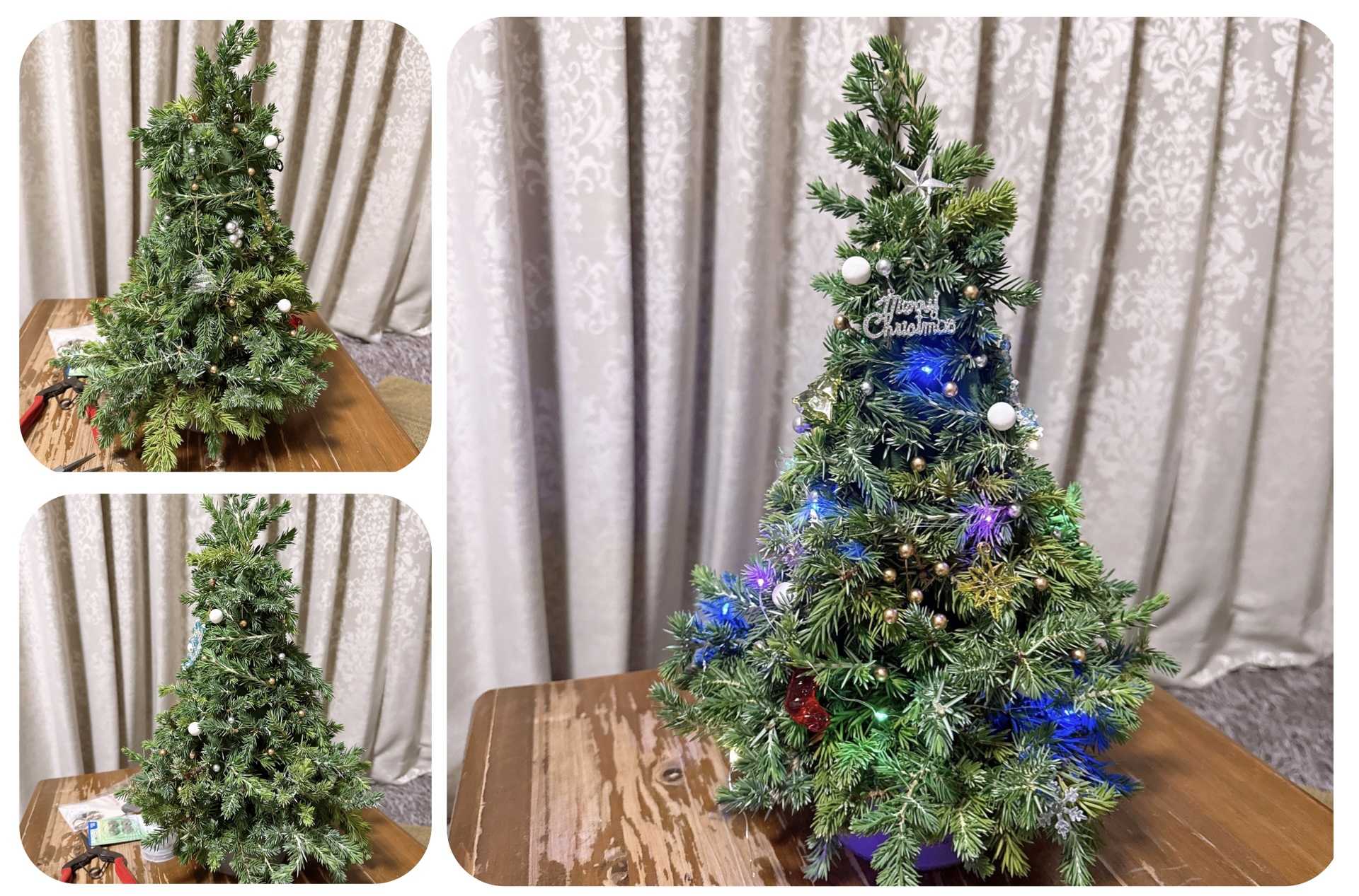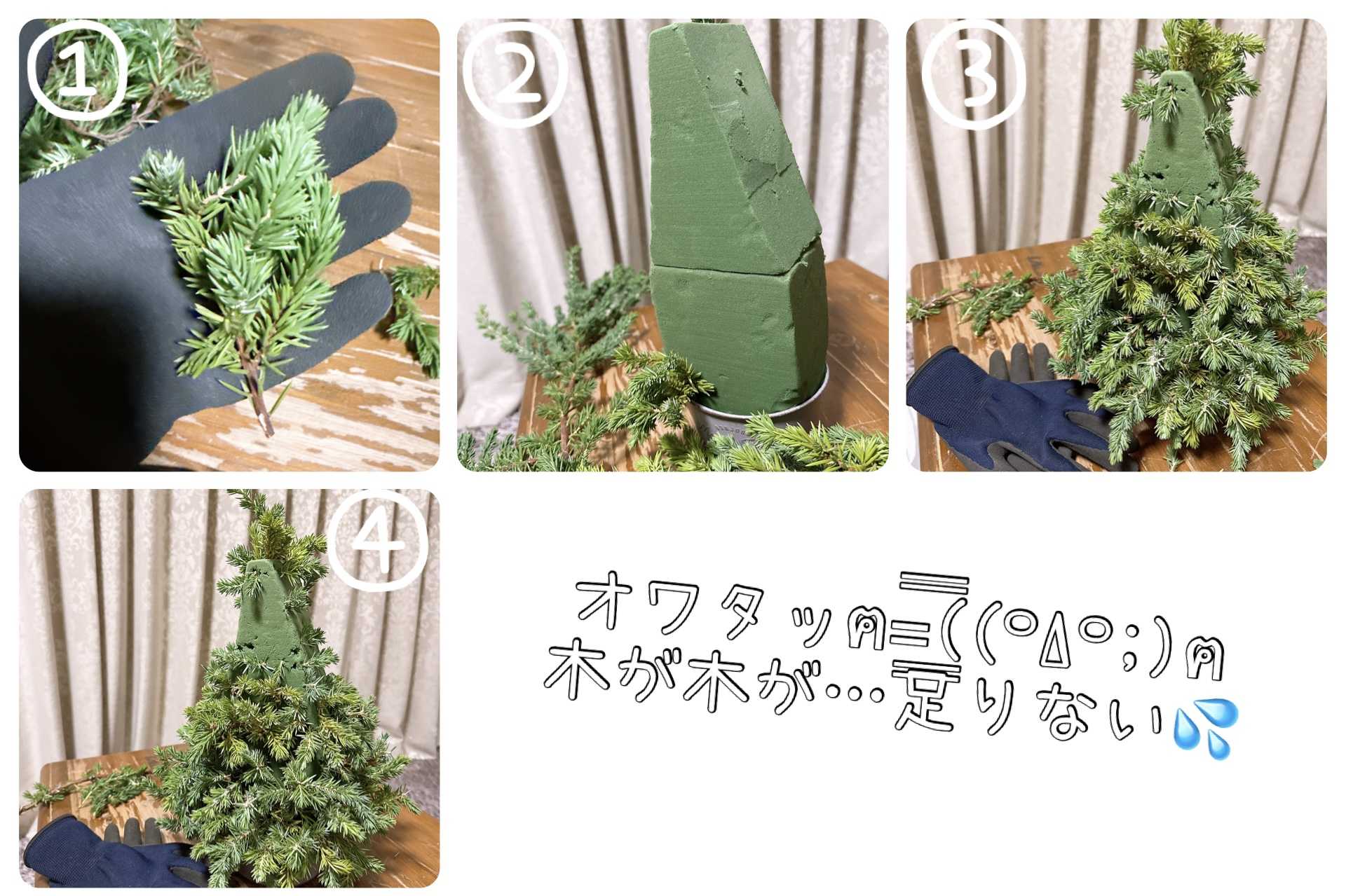 今月に剪定した庭木を材料にツリーに挑戦🌲使った材料はセリアやダイソーで購入した物と我が家の木⚠️この写真にはありませんが、割り箸も一膳使用しています。リース作りで欲張ってオーナメントを集めたために、あまりに余っていたので飾るスペースができて嬉しいです。⚫︎選んだ基準できるだけ軽い物。もちろん球のオーナメントもつけたいと考えましたが、重さの事を思うと落ちてしまうのでは?と悩んだ末に子供と一緒に軽い物のみ厳選してセリアで購入しました。
