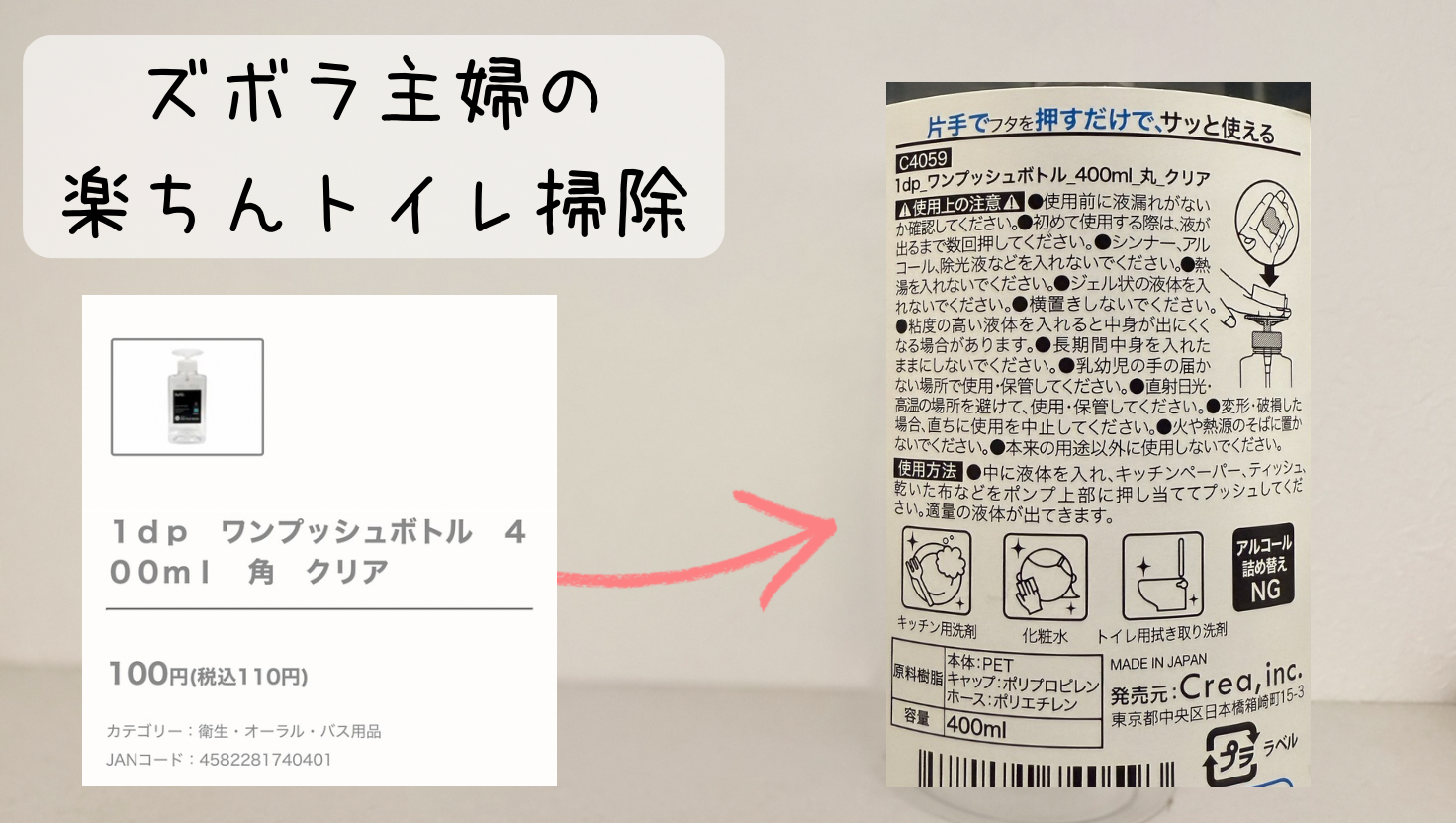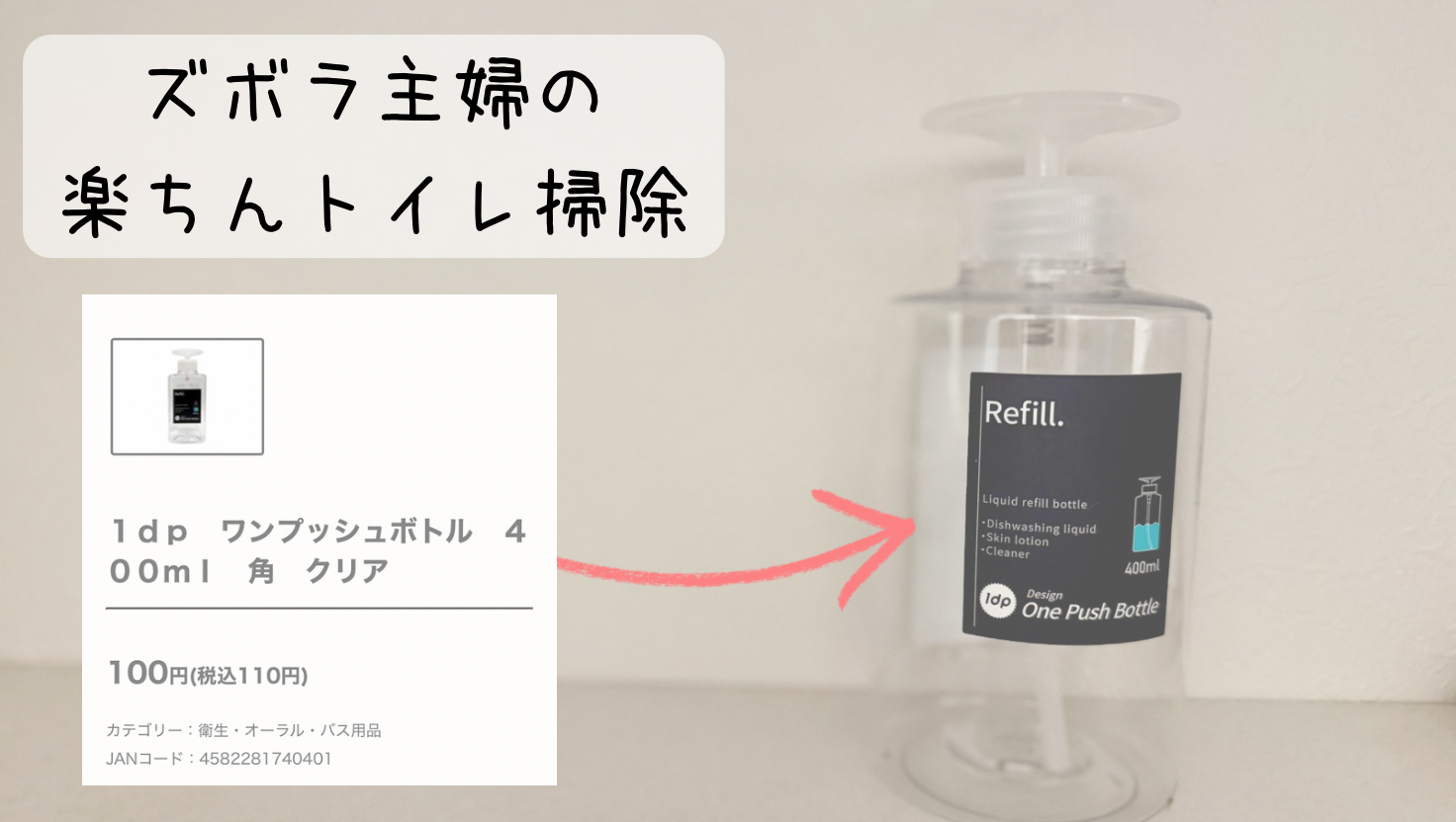 これはまずいなと感じた私はダイソーでこのワンプシュボトルを購入してセッティングしたわけです。
