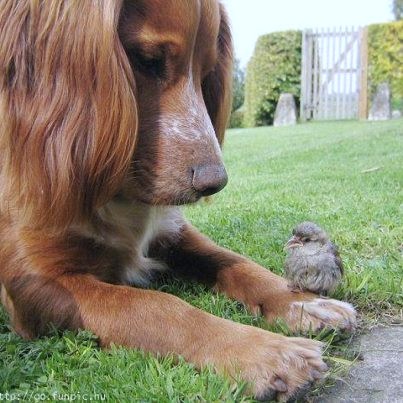 ポツポツと降ったり止んだりの夕方の都内です。 《癒されたらシェア》さんからシェアしました。 どういう経緯で、この状況が生じたんだろうという《1枚》 庭先の芝生の上で、座り込んだ《チョコ・ラブ君》 その左足の上に、留まった《小鳥くん》‐種類が?‐^^; オイオイと言わんばかりの?チョコ・ラブ君の視線…反面、マズイとこに留まっちゃったなぁ~と思ったか視線を外す、小鳥くんの表情… お互い身じろぎできずに、悩んでいる?表情を想像しながら、お楽しみくださいませ