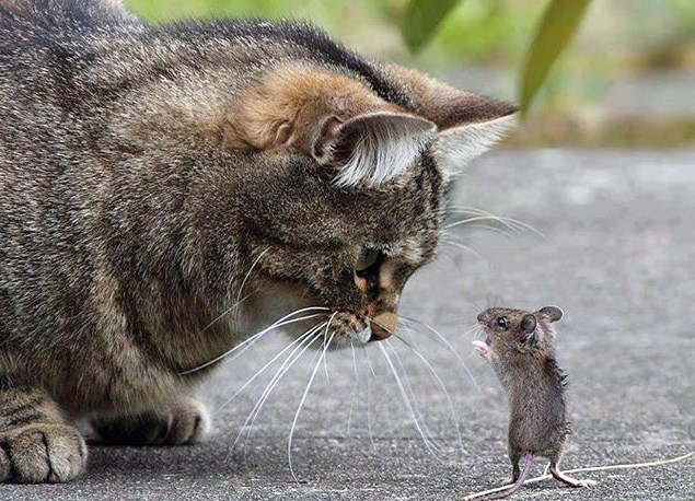 《癒されたらシェア》さんからシェアしました。 アスファルトの上で、対峙している2人。 サイズが極端に違いすぎますが・・・ネコ君は、興味津々なのでしょうか・・・ 思いっきり接近。ネズミ君は、まるで何かをアピールするような仕草・・・ 接写で・・・ このアングルで・・・ 撮れるのが凄いんですが この距離感での、お互いの気持ちの動きが伝わるような・・・ 路上でこのシチュエーションは珍しいと、、、その思いで・・・ キャプションを思い浮かべてみてください