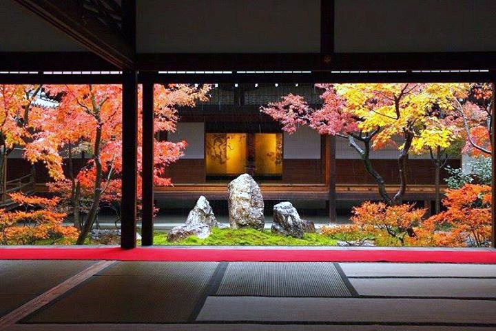 《行ってみたいならシェア》さんからシェアしました。 借景というには、あまりにも贅沢な【1枚】を・・・ 建仁寺の中庭だそうです。。。 静寂の中の石庭と、、、紅葉のコラボレーション・・・ 畳越しの和室から、この風景を目の当たりにしたら、、、時間を忘れそうです。。。 陳腐なフレーズしか浮かびませんが・・・[日本人でよかった]と、思う瞬間でしょう。。。 まさしく、、、「めでる」という・・・