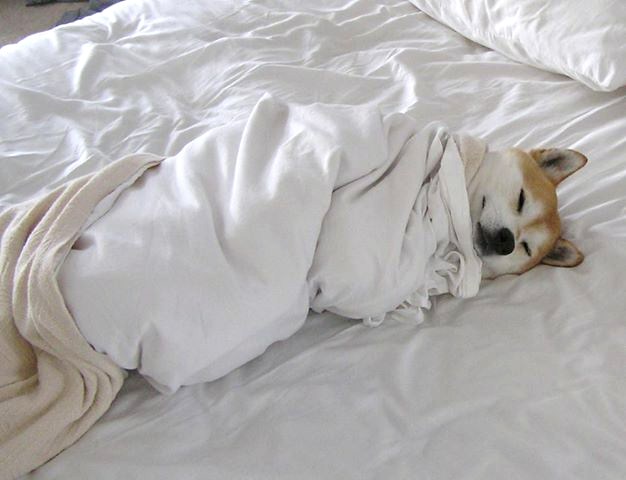 岩手方面の震度3の地震、お見舞い申し上げます。 未だに、余震の一連でしょうか、ご留意の程を 《癒されたらシェア》さんからシェアしました。 朝日の差し込むベッドの上で、毛布にくるまったまま・・・「あと~ 5分だけ・・・」とばかりに 熟睡の【ワンコ】 それも、、、キレイに、、、体中に、、、毛布にくるまって・・・ 熟睡具合で、起こすのもためらわれそうで・・・ でも、そろそろ、、、起きないとね・・・