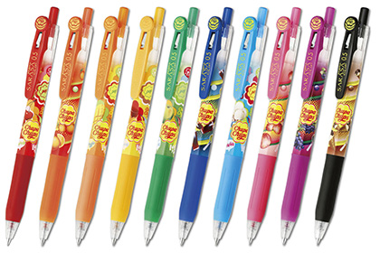 舐めたりはしないでしょうが・・・ 思わずペロリ衝動を掻き立てられるボールペン登場 「チュッパチャプス」の香りをインクにつけたジェルボールペン「サラサクリップ×チュッパチャプス」が,ゼブラから発売中インクにはチュッパチャプスの『10』のフレーバーを再現した香料を配合しているそうで。。。 書いた先から甘くおいしそうな香りが。軸にはチュッパチャプスのロゴと,それぞれのイラストを配置。クリップにもチュッパチャプスの包み紙イラストが印刷されるという徹底ぶり。。。 1本あたりの価格は180円(税抜)。バラ売りの他にも900円の5色セットが2種類と10色コンプリートセットが1,800円で登場 チュッパチャプスのデザインと甘い香りでリラックスして勉強や仕事がはかどるか~~ 世界中で人気があるキャンディー「チュッパチャプス」の香りをインクにつけたジェルボールペン...価格:1,749円(税込、送料別) 世界中で人気があるキャンディー「チュッパチャプス」の香りをインクにつけたジェルボールペン...価格:194円(税込、送料別)