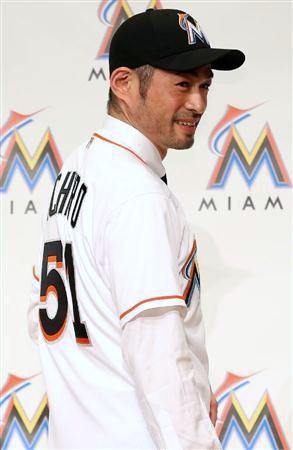 マーリンズと契約を結んだイチローが入団記者会見 マーリンズは会見の為に,サムソン社長・ジェニングズGMら球団幹部がそろって来日する異例ぶり・・・ イチローは...「ただただ恐縮しています。この機会が日本で実現できている事は通常あり得ない事と認識している。球団のやたら熱い思いが伝わってきて,この思いに応えたいという気持ちがわいてきた」と話した。 年俸 2億4000万円の1年契約。オリックス、マリナーズ時代と同じ背番号「51」「新しいユニホームを着るとテンションが上がるというのは子供の頃から変わらない」と・・・ ヤンキース時代は,憧れているB・ウイリアムスへのリスペクトで球団の申し入れを辞退したが・・・見慣れた背中が、マイアミに。。。