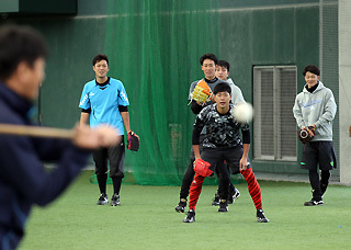 ヤクルト移籍の決まった,奥村がG球場最後の練習を行った チームメイトが最終調整の中,中井らと挨拶を済ませ・・・戸田のヤクルト寮へ向かった。。。 手ごわい相手になるか 19歳の健闘を・・・ 村田も自主トレを行いフォーム固めに専念した。打撃マシンを相手に約30分。差し込まれないように引き手の左手一本で打つなど・・・内角球を打ち続けた。「フォームを固めています。体に覚えさせたい」と・・・移籍した相川と久しぶりの対面。「先輩ですから。しっかりと立てますよ」と笑顔で話した。。。 金城なども,宮崎の合同自主トレへ最終段階の調整
